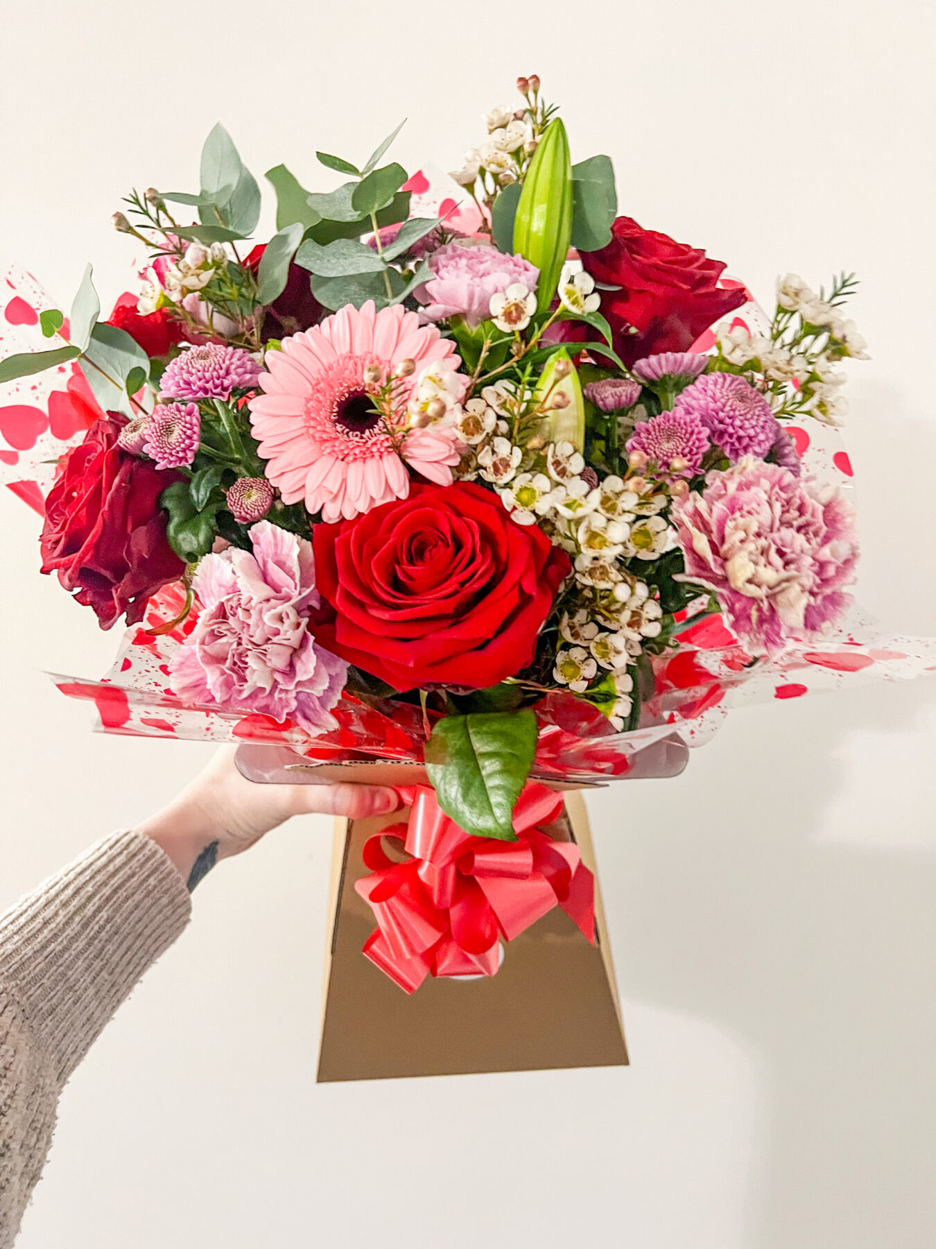 *Please note the bouquets in the photos are examples of previous orders, for size purposes only and not the one you will receive. Each bouquet is unique and made fresh on that day.